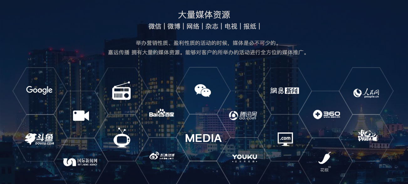 是成都最大规模文化传播公司之一,专业从事品牌策划推广,活动庆典演艺,视觉创意设计, 影视摄影制作。嘉者,美也,善也,幸福,吉祥。远者,辽也,遐也,远扬,远志。嘉远懿行, 远扬文化。甄选资源之美;聚合活动之美;发扬传播之美。公司秉承“诚信美德,传承文化” 的思想理念,坚持“专业、创新”的服务理念,倾力打造出一支资源性创意的专业队伍, 着力打造出业界最具影响力的文化传播平台 了解更多>>